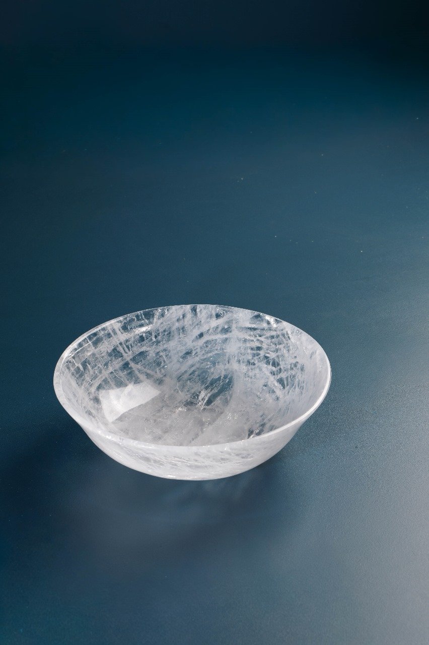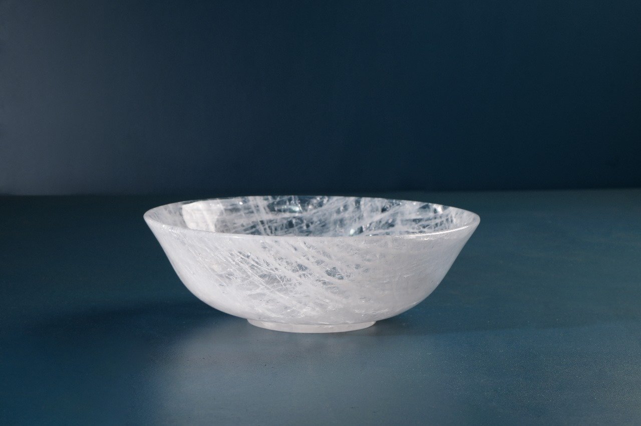 This bowl showcases clear, radiant crystal textures, making it a sophisticated addition to bathrooms or decorative displays.